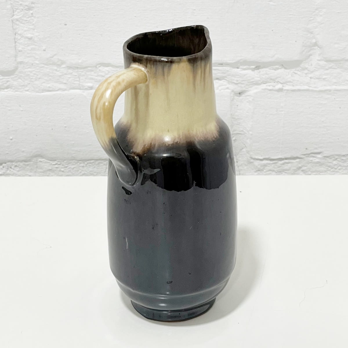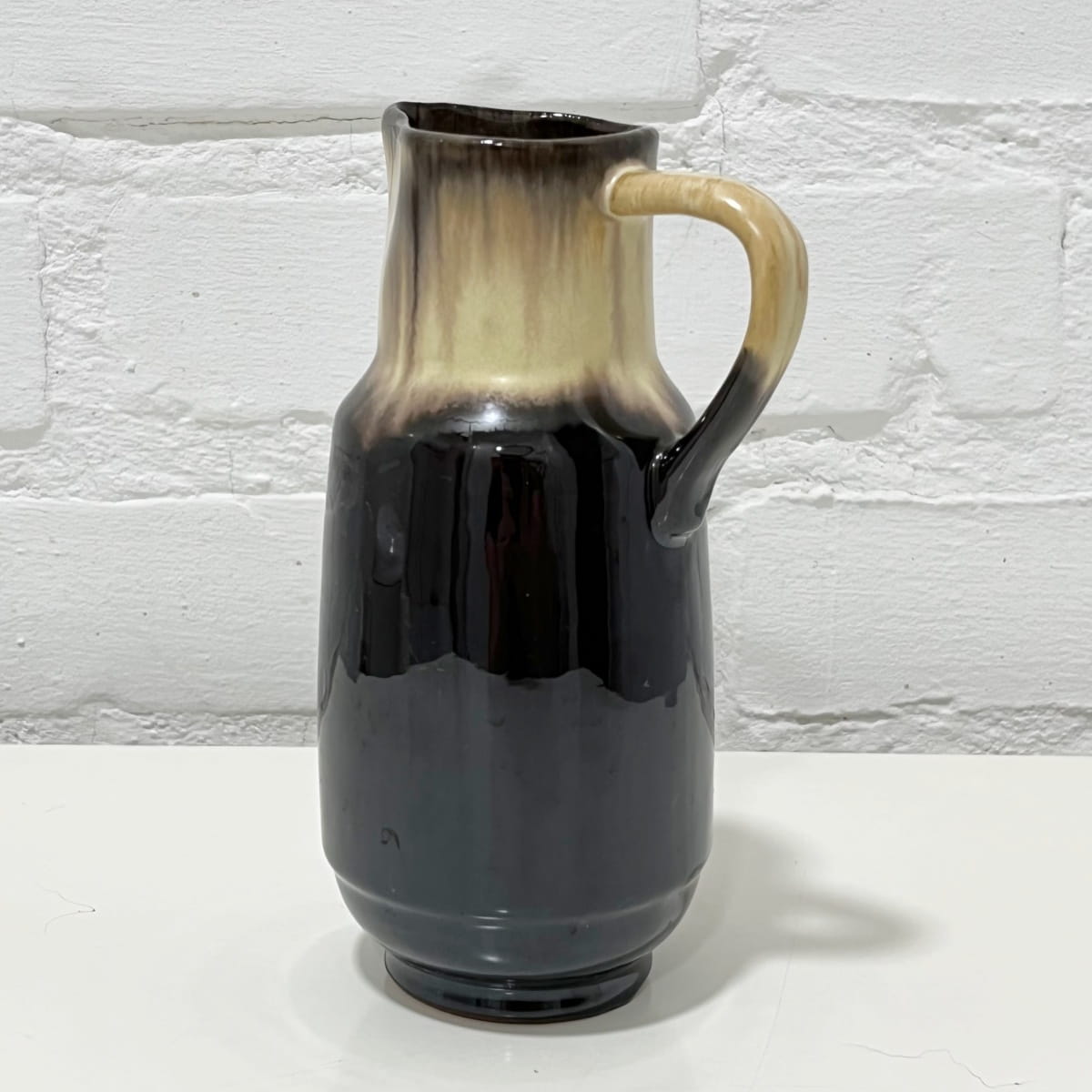 Wazon ceramiczny wyprodukowany najprawdopodobniej w Czechosłowacji w latach 60/70.Ten niewielki wazon ma bardzo ciekawą formę dzbanka. Jest pokryty lśniącym gładkim szkliwieniem.Wnętrze jednolite w kolorze ciemnobrązowym.