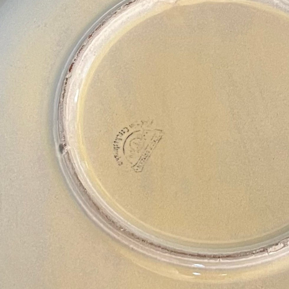 Bardzo efektowny ceramiczny talerz pochodzący z czechosłowackiej wytwórni Ditmar Urbach, prawdopodobnie z lat 60/70. Powierzchnia talerza pokryta lśniącym przyciągającym wzrok kolorowym szkliwieniem. Wybarwienie i wzór są jedyne w swoim rodzaju i utrzymane są w stylistyce lat 60. To swoista mieszanina barw i ręcznie malowanych nieregularnych wzorów. Dominują brązy i beże z dodatkiem niebieskiego. Wybawienie i kształt nadaje naczyniu styl, który przywodzi na myśl wakacyjny śródziemnomorski klimat.
