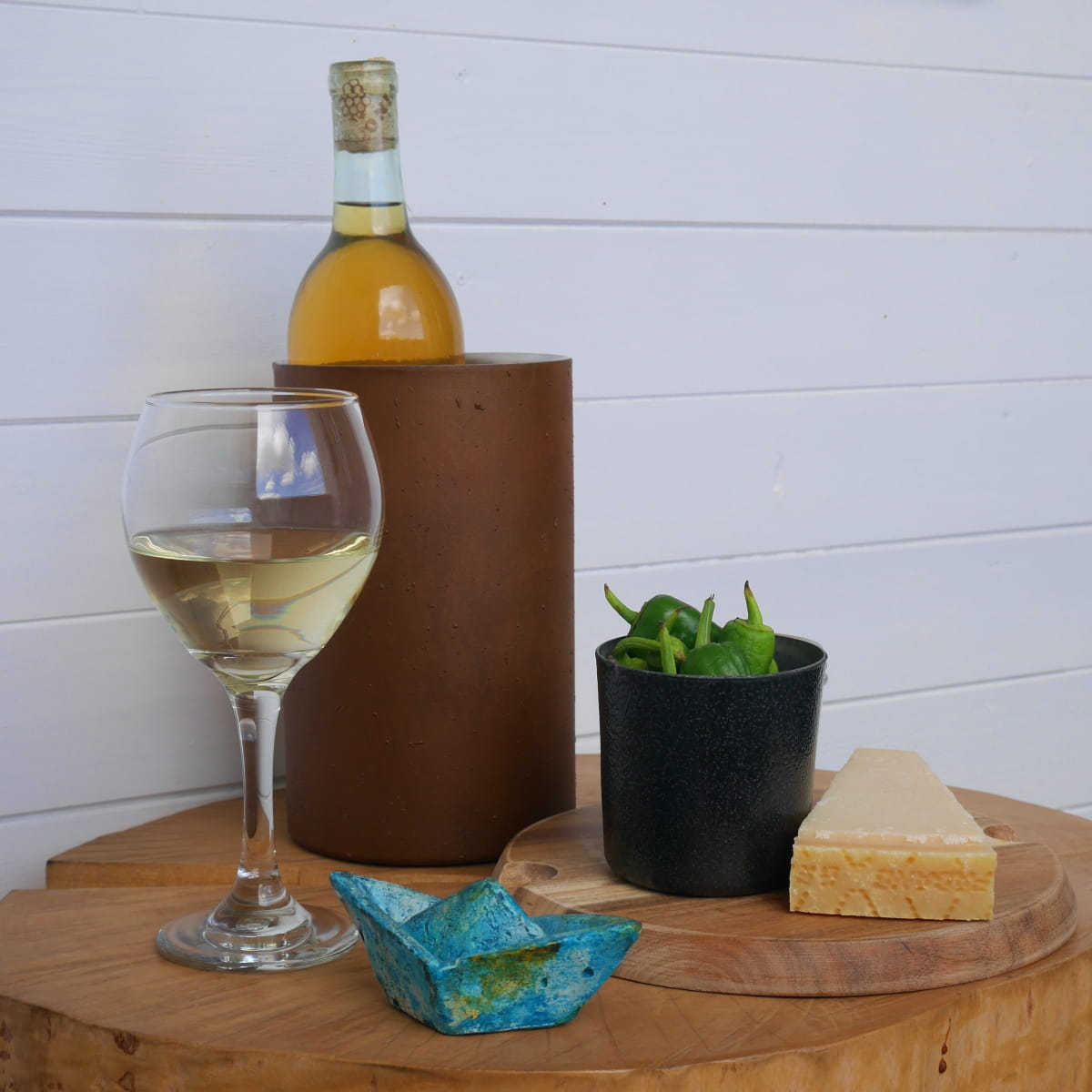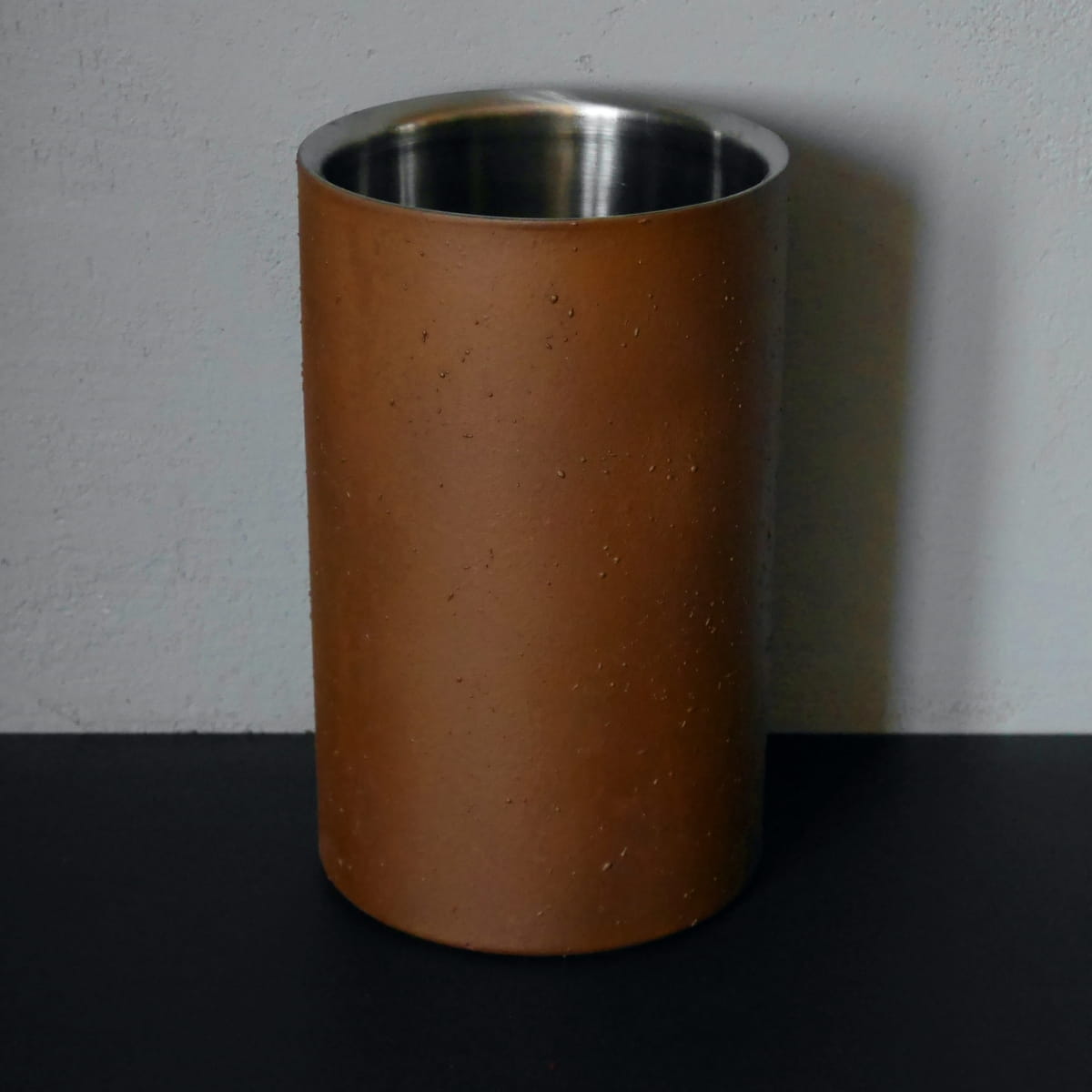 Cooler do win i szampanów to barowe akcesorium, które zadba o odpowiednią temperaturę serwowanych win. Stanowi nie tylko praktyczną pomoc w chłodzeniu win ale również wspaniałą ozdobę stołu. Cooler ma elegancki, klasyczny kształt i unikatowy kolor i teksturę. Pokryty jest powłoką imitującą rdzę, co nadaje mu nowoczesny, industrialny charakter. Jest to niezwykle piękny przedmiot. Będzie stanowił dizajnerski dodatek w nowoczesnym wnętrzu.