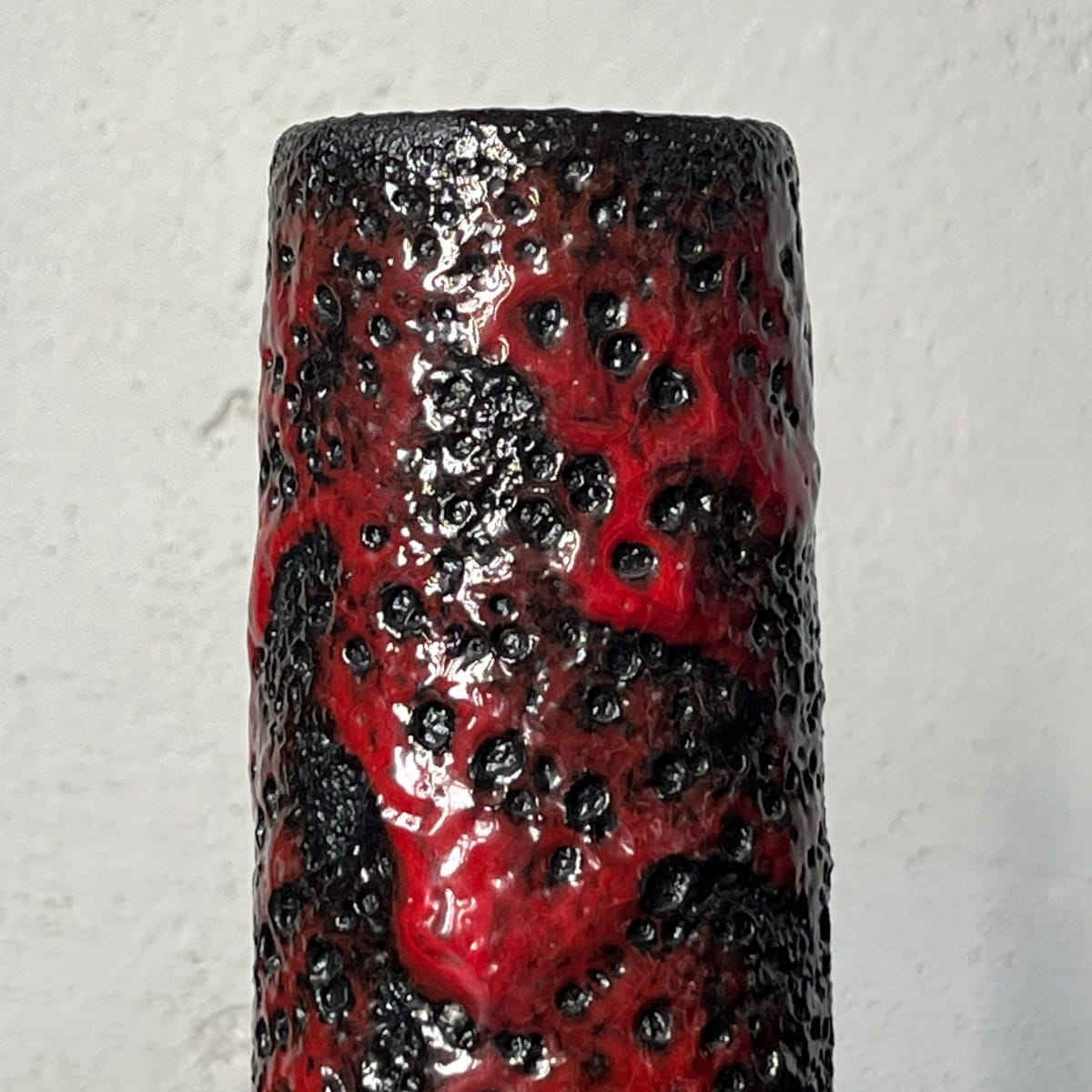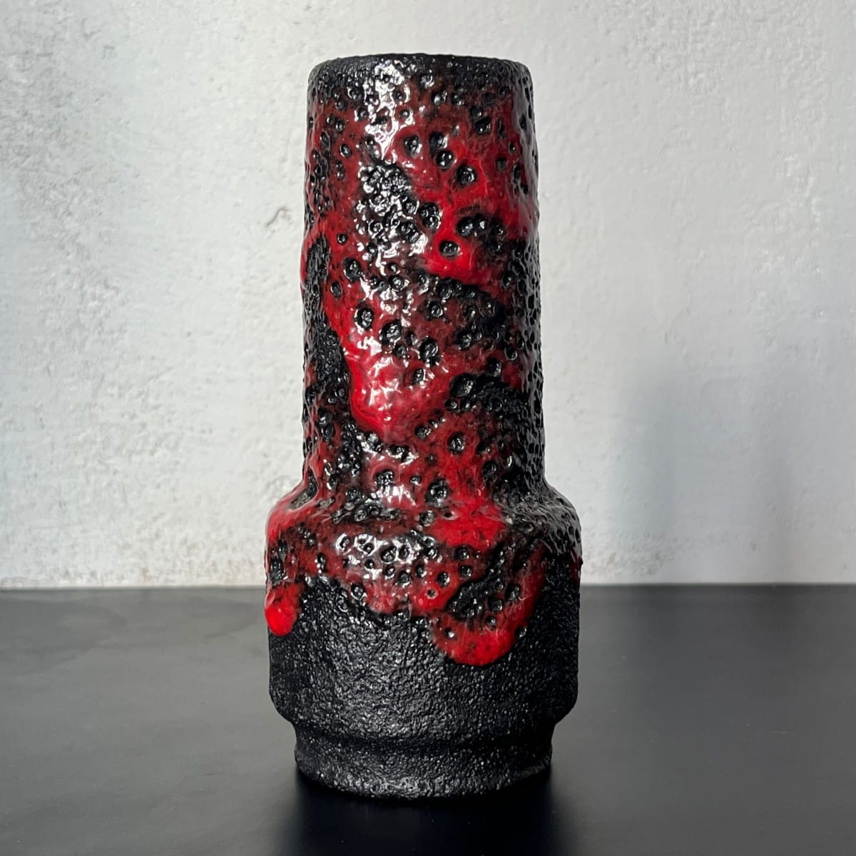 Wazon utrzymany jest w tonacji czarno-czerwonej. Pokryty jest grubym niejednorodnym szkliwieniem typu Fat Lava. Szkliwienie trójwymiarowe, miejscami chropowate i wypukłe.
