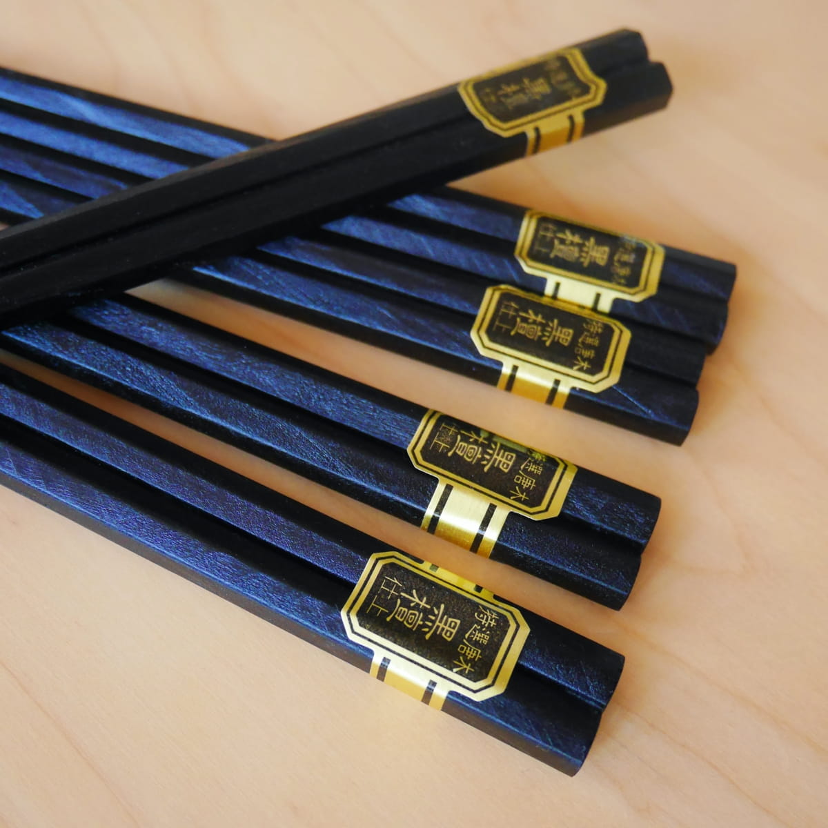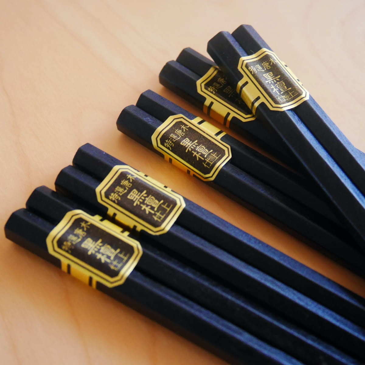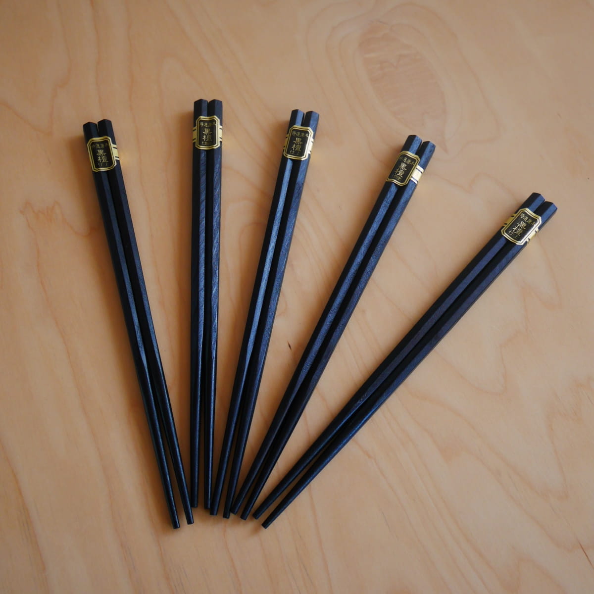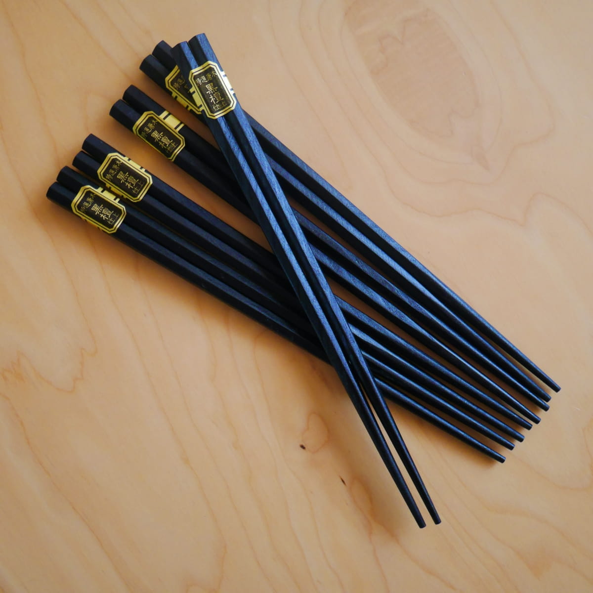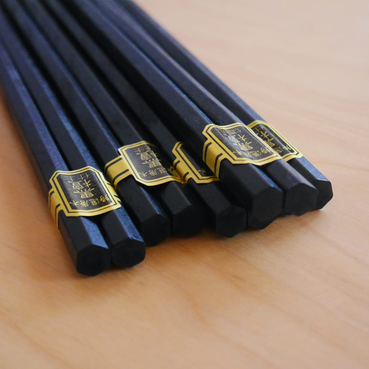Eleganckie tradycyjne drewniane pałeczki w kolorze czarnym. Pałeczki o przekroju sześciokątnym i okrągłych czubkach. Wykonane z lakierowanego drewna. Dzięki lakierowanej powłoce można je myć i używać wielokrotnie.