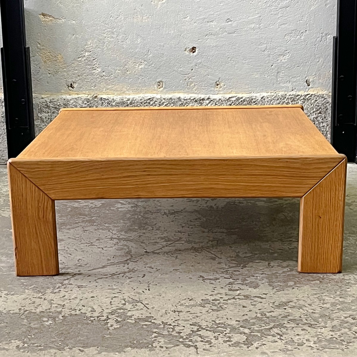 Niski stolik kawowy z drewna egzotycznego. Miks stylu Japandi i modernizmu, jego prosta, geometryczna bryła łączy w sobie japoński minimalizm z funkcjonalnością. Kwadratowy blat oraz niska konstrukcja sprawiają, że stolik prezentuje się niemal nowocześnie. Mebel wyróżnia się surową, geometryczną bryłą pozbawioną jakichkolwiek zbędnych zdobień. Dominującym elementem wizualnym jest tutaj jasne drewno o ciepłym odcieniu. Stolik emanuje spokojem i harmonią, charakterystyczną dla mebli wykonanych z naturalnych materiałów. Jest to solidny, użytkowy przedmiot, który dzięki prostej formie i naturalnym materiałom łatwo wpasować w różne aranżacje.