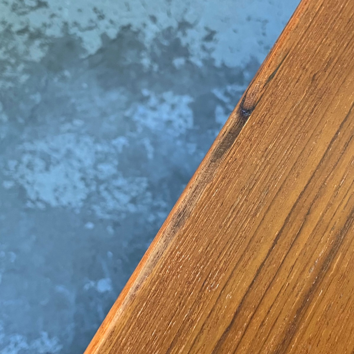 Prezentowany stół jest meblem używanym z ponad 50-cio letnią historią. Mimo to technicznie i wizerunkowo zachowany jest w bardzo dobrym stanie vintage. Blat został odświeżony i wygląda świetnie. Posiada normalne ślady użytkowania w postaci drobnych rysek czy otarć oraz dwie skazy użytkowe tj. uszczerbek zewnętrznej listwy w blacie oaz wgłębienie wielkości 1 gr w narożnej części blatu. Wszystko widoczne na zdjęciach. Konstrukcja stabilna.