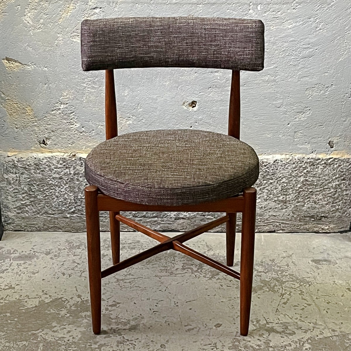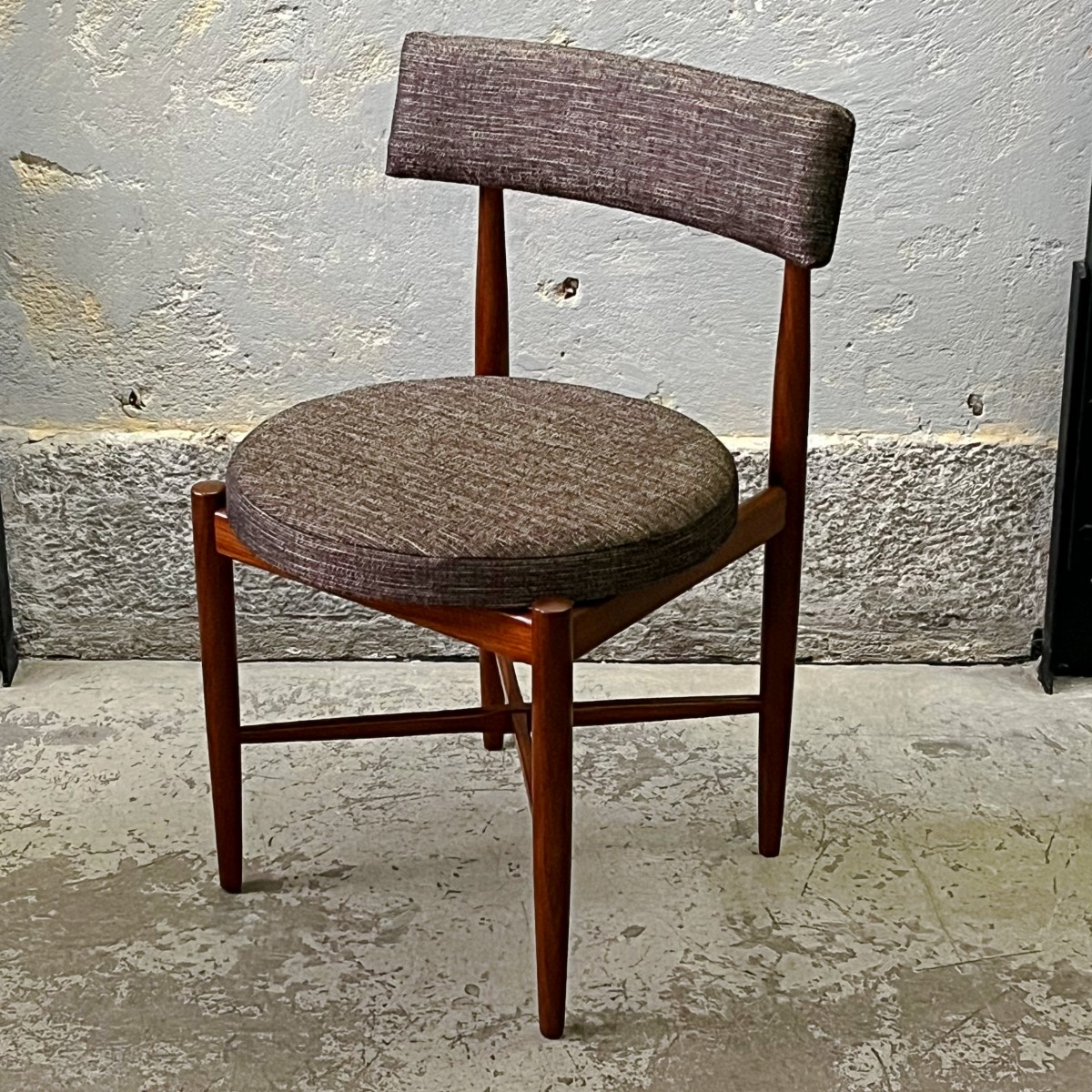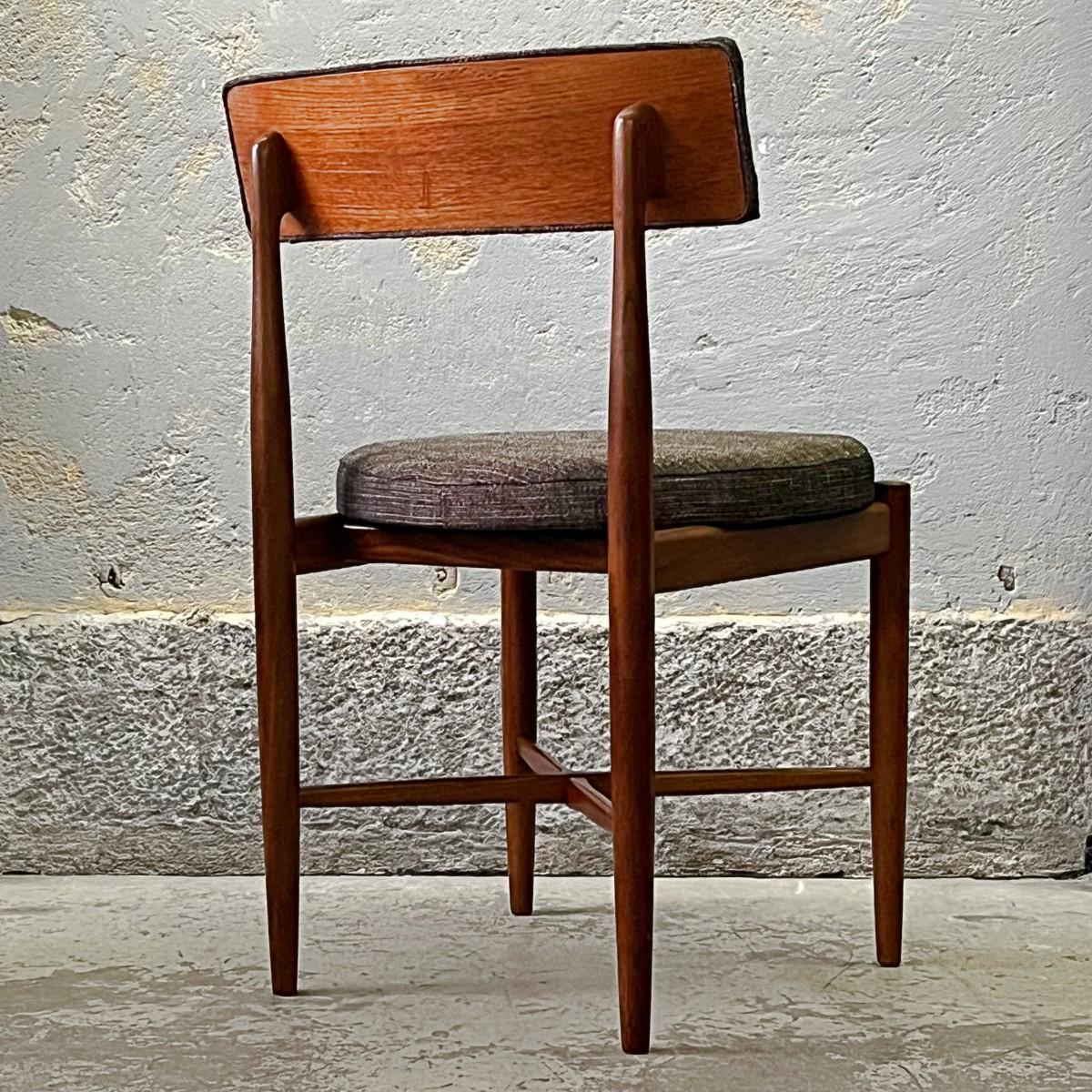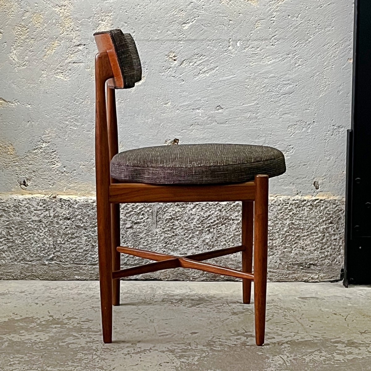 Komplet czterech rzadkich modernistycznych krzeseł zaprojektowanych przez duńskiego projektanta Iba Kofoda-Larsena w latach 60. dla brytyjskiej manufaktury G-Plan. Krzesła nr 3570.