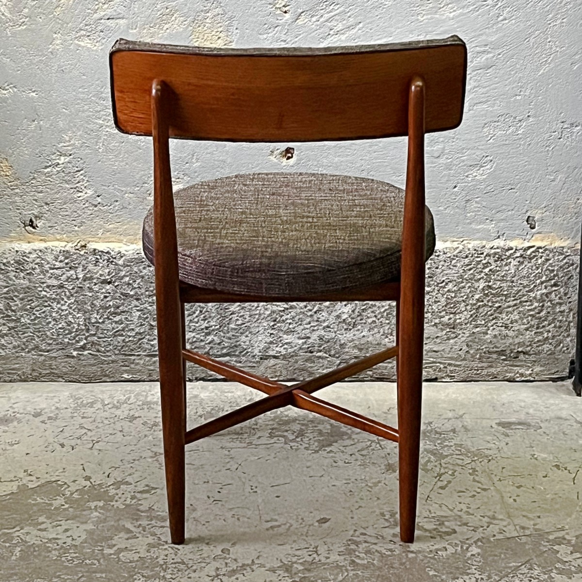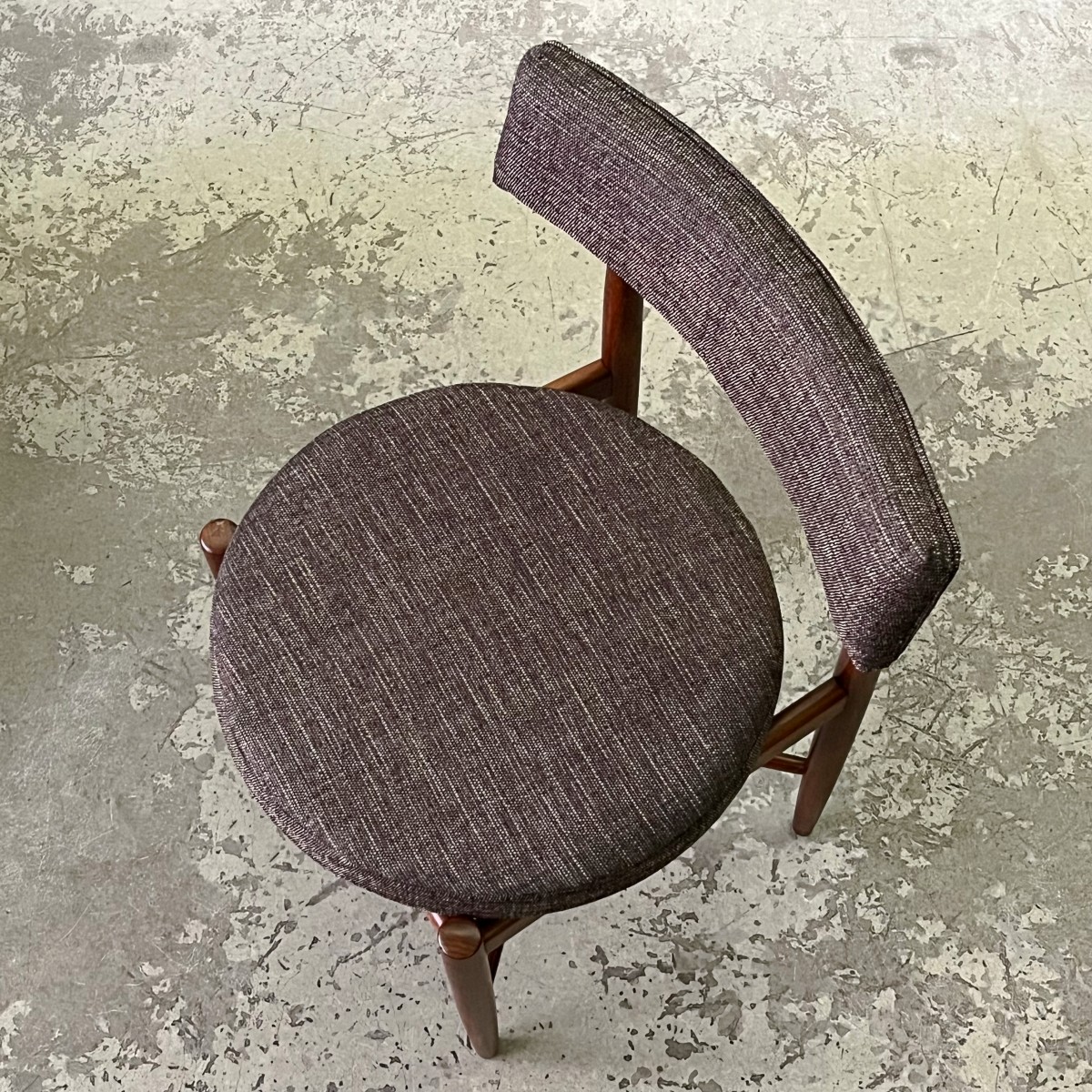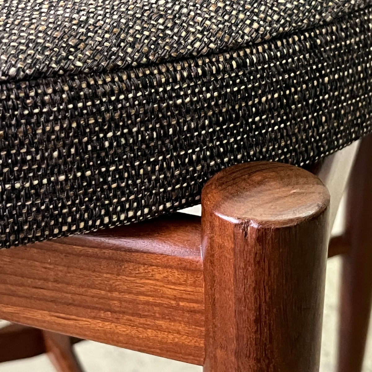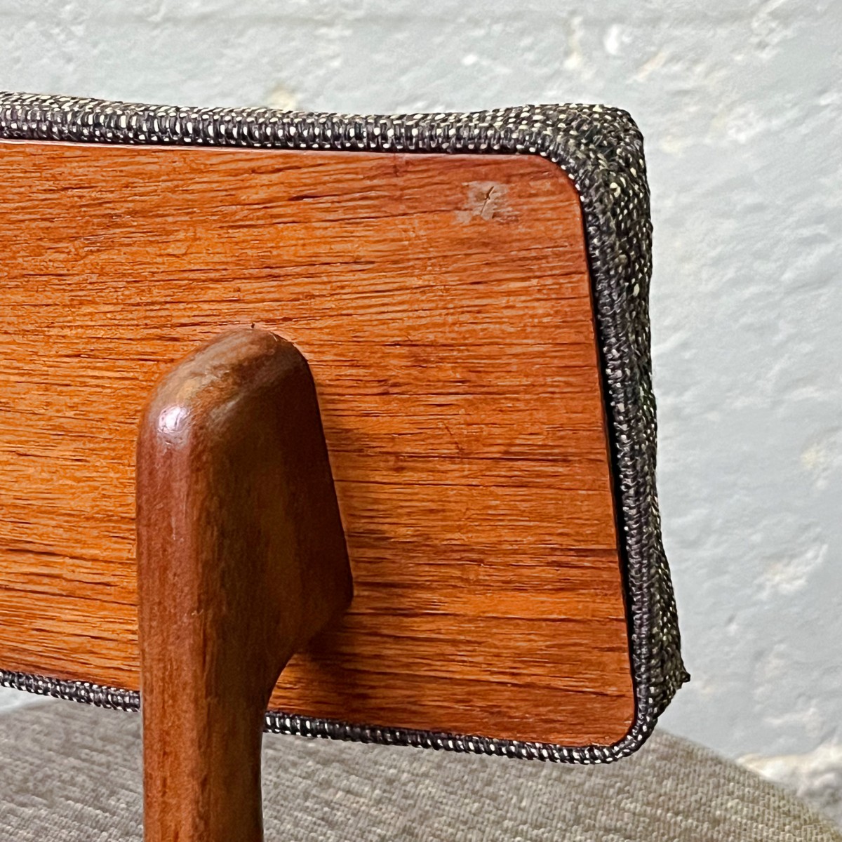 Krzesła nie są nowe, to meble vintage, są jednak zachowane w bardzo dobrym stanie. Elementy drewniane pozostawione w naturalnym, mogą posiadać delikatne niedoskonałości w postaci niewielkich wgnieceń i rysek. Krzesła przeszły renowację tapicerską.