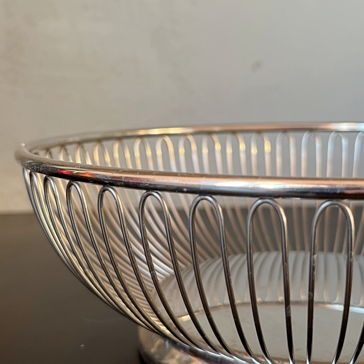 Druciany koszyk 826, jeden z najstarszych wzorów marki Alessi. Produkowany od 1948 roku. Ażurowa konstrukcja wykonana z polerowanego stalowego drutu. Lekki w formie i minimalistyczny.