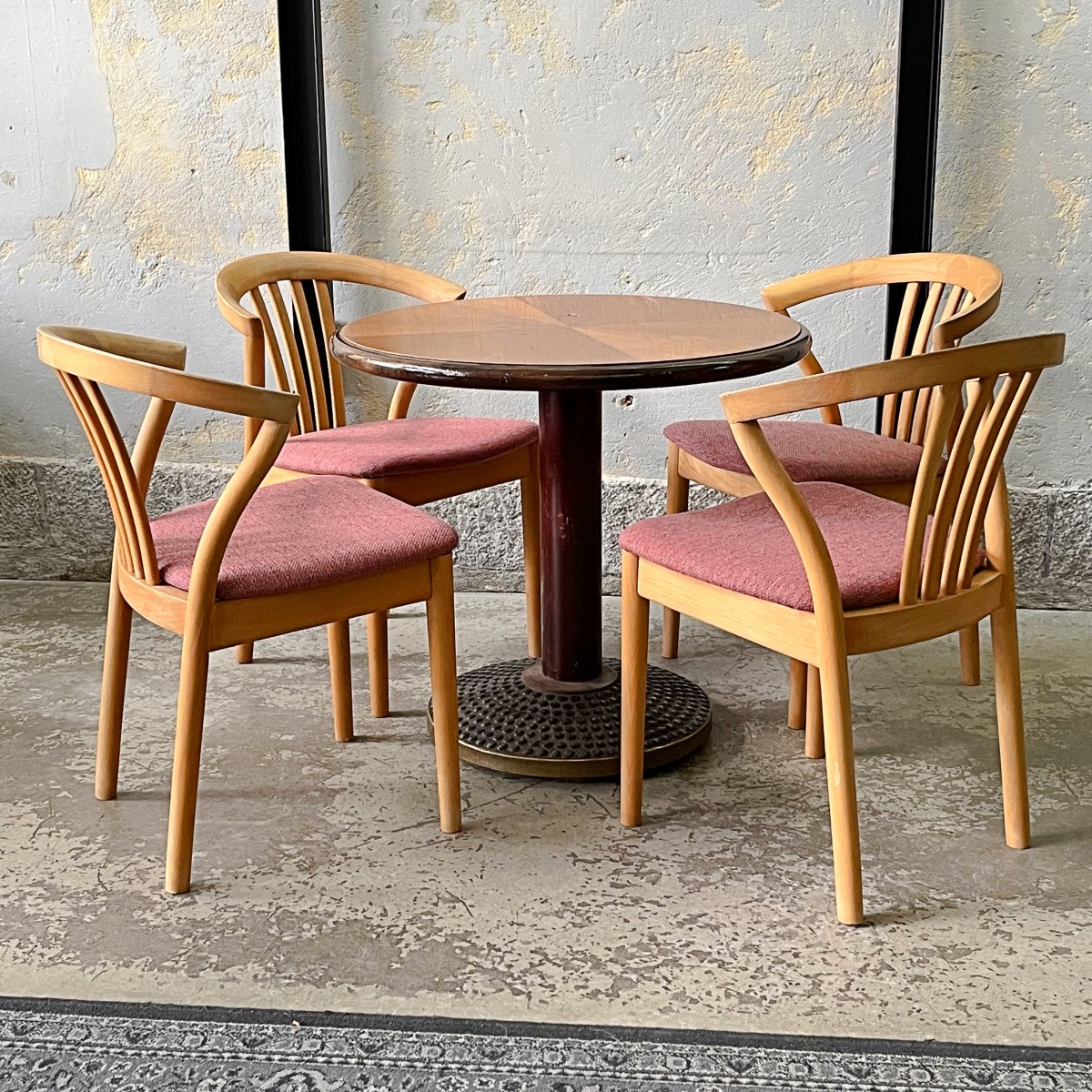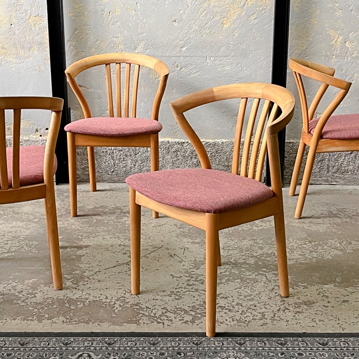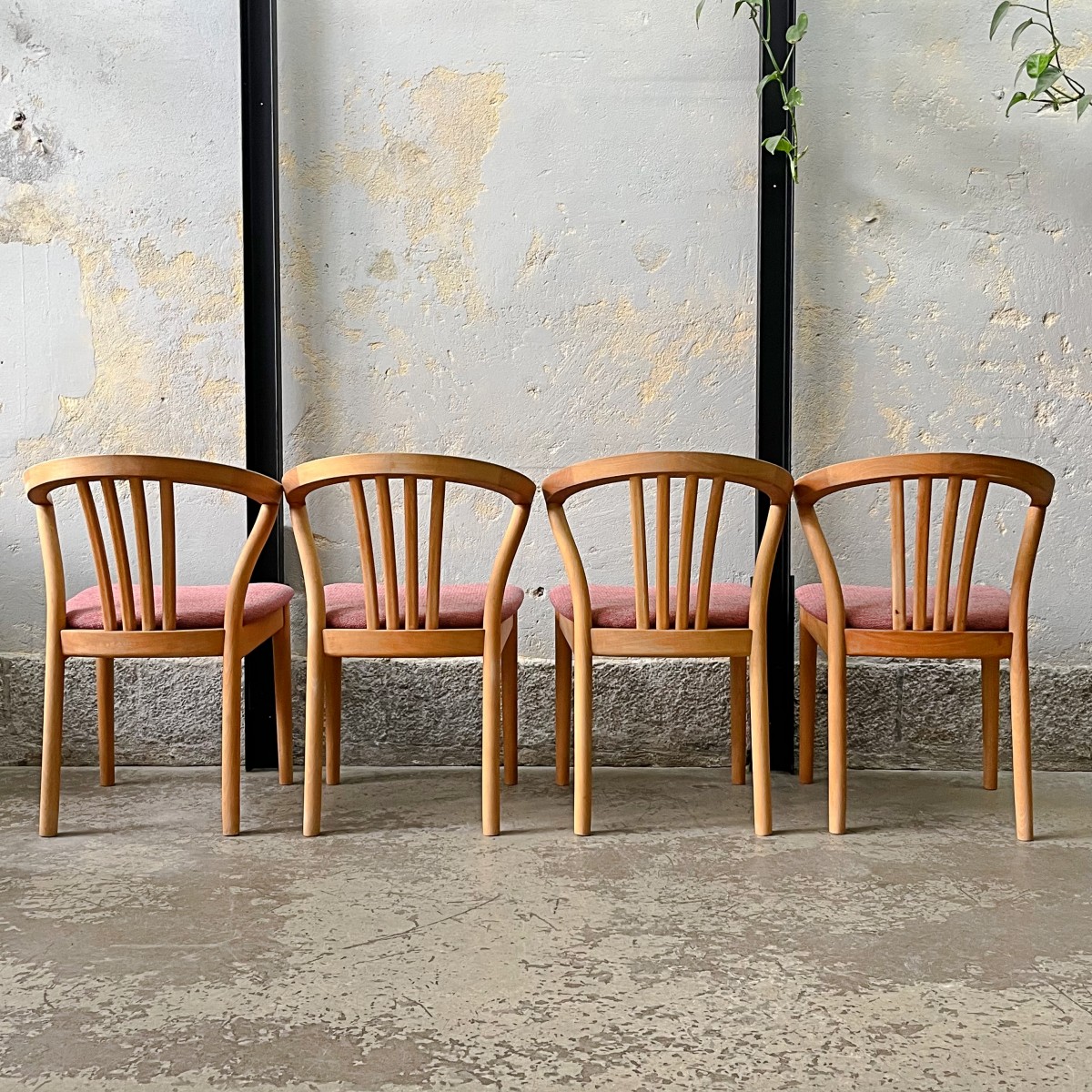 Solidne krzesła wykonane z litego bukowego drewna. Krzesła z lat 90. w postmodernistycznym stylu wyprodukowane przez Team 7, Austria.