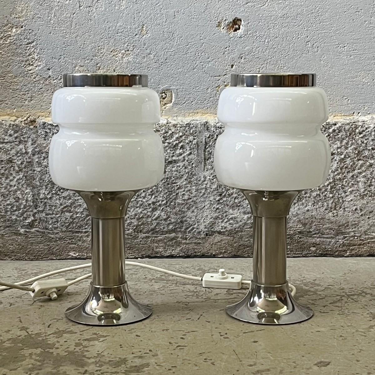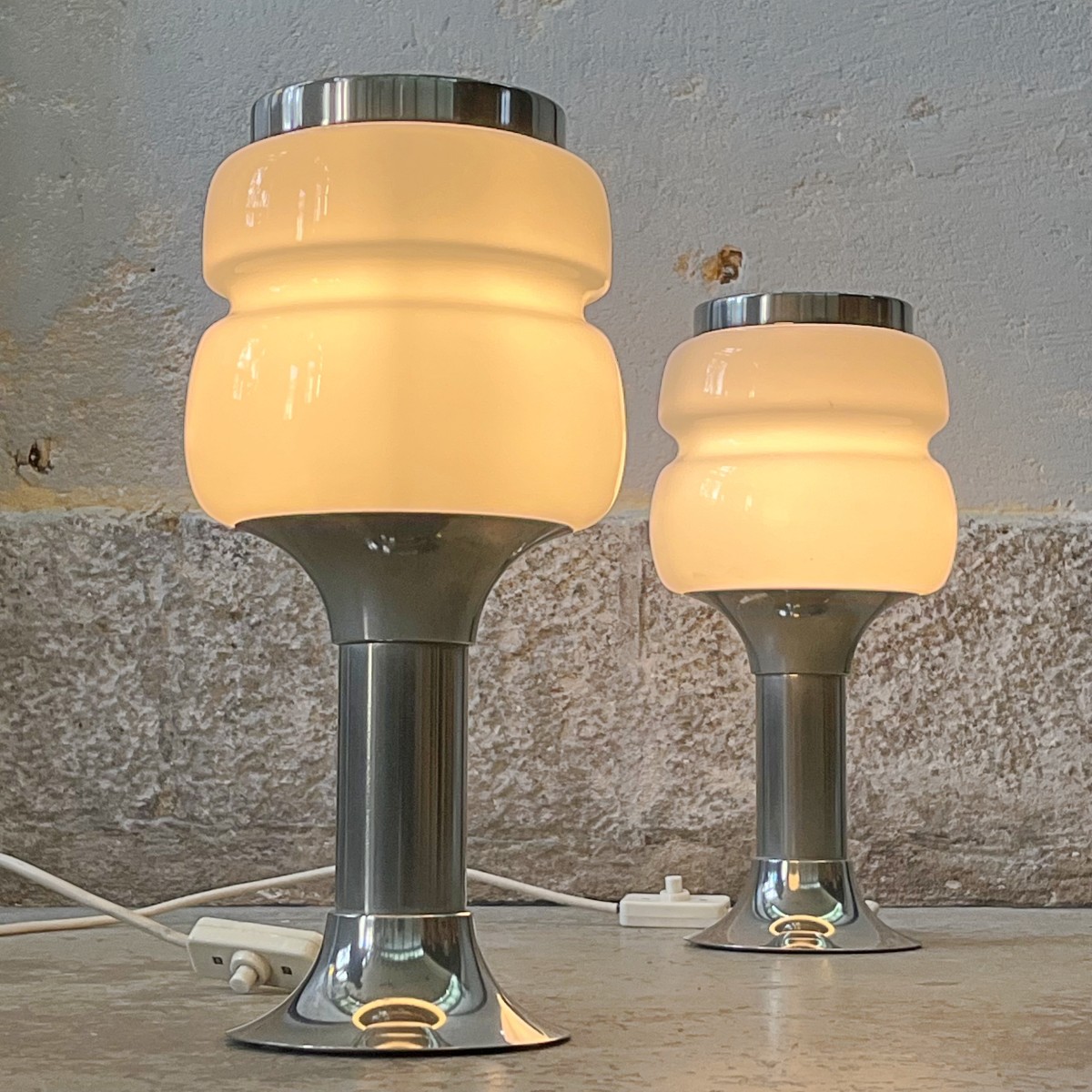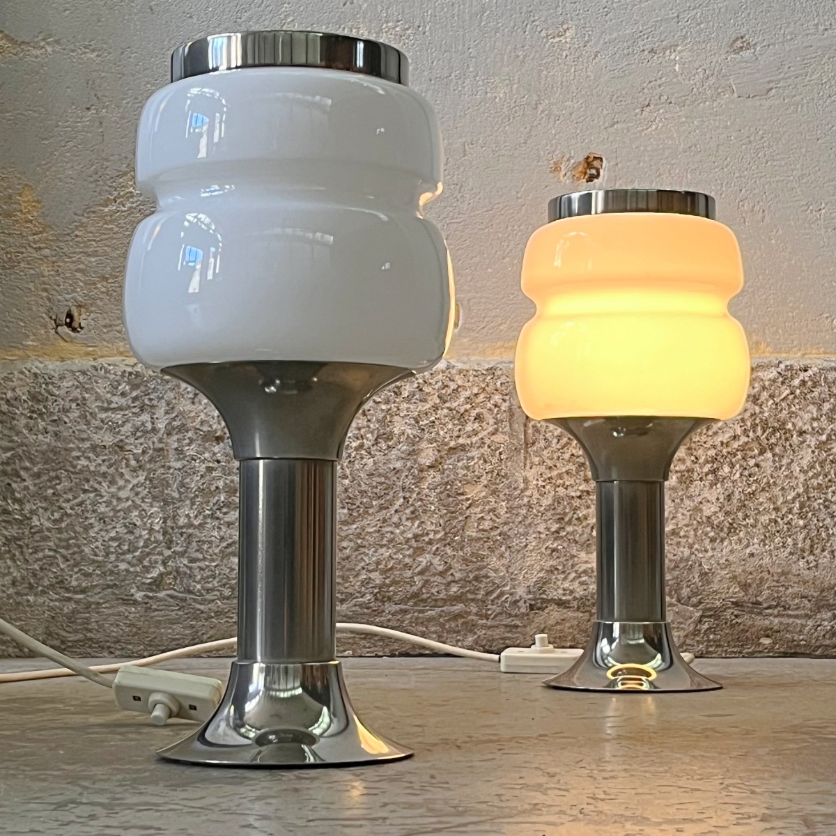 Niezwykłej urody lampy gabinetowe w stylu art deco na stalowej nodze. Wyprodukowane w Niemczech , prawdopodobnie w latach 70., dla AKA Leuchten.