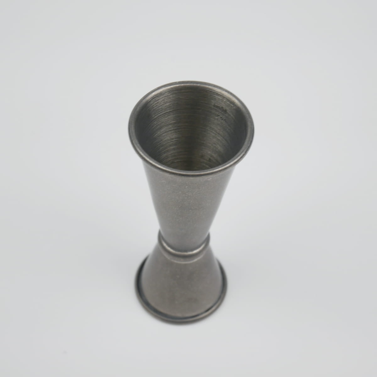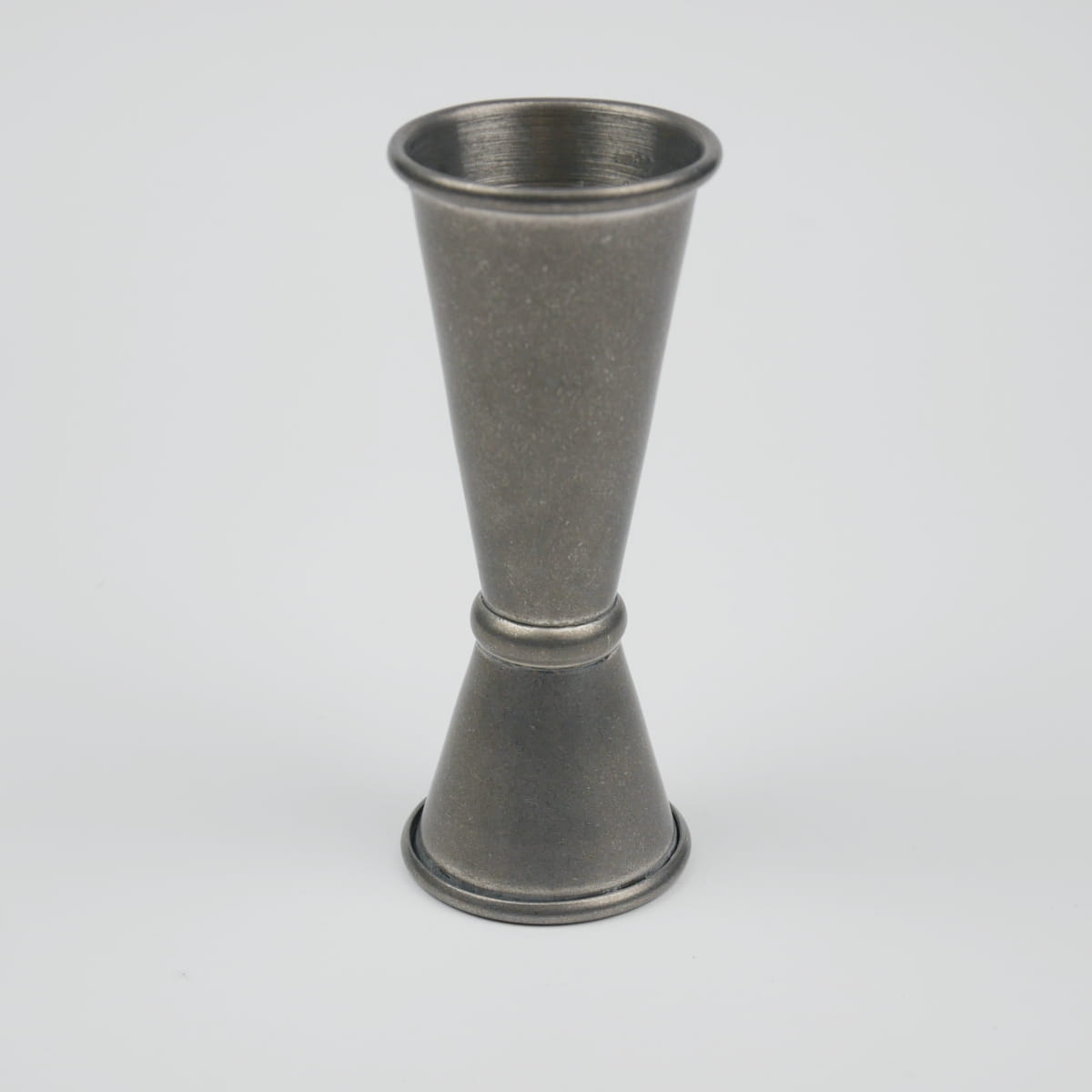 Miarka dwustronna o kształcie klepsydry jest wykonana ze stali nierdzewnej w kolorze postarzanego srebra vintage w matowym odcieniu. Jest to solidny i trwały przedmiot. Jigger ma zaokrąglone ranty, które zapobiegają wylewaniu się alkoholu. Jigger ma pojemność 25 i 50 ml. Podana objętość jest osiągana po nalaniu płynu do krawędzi.