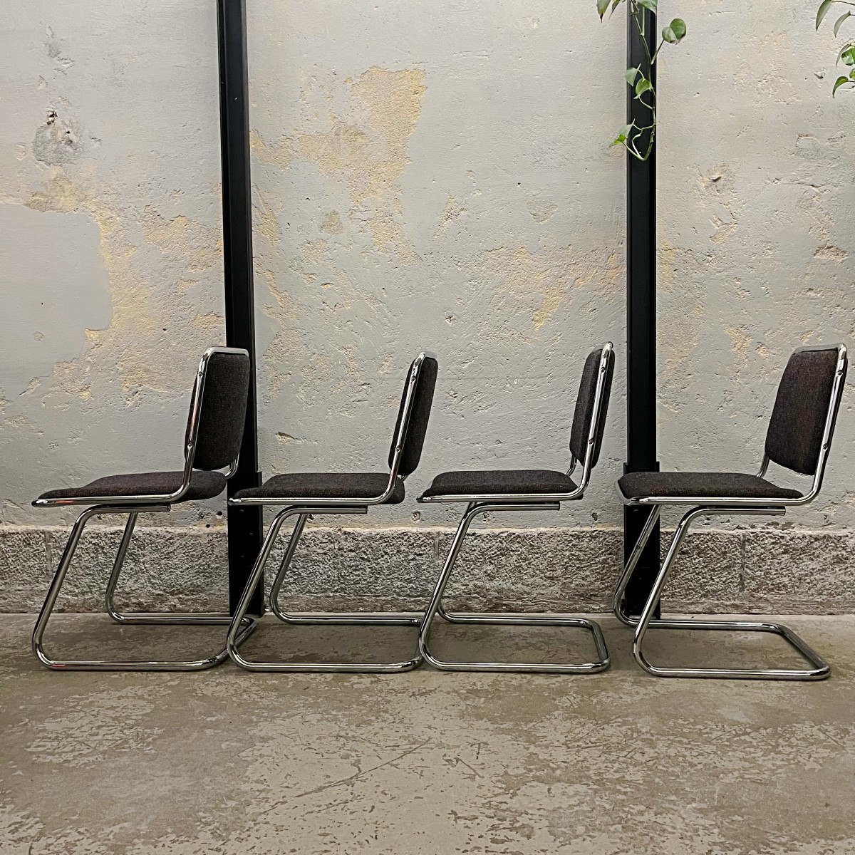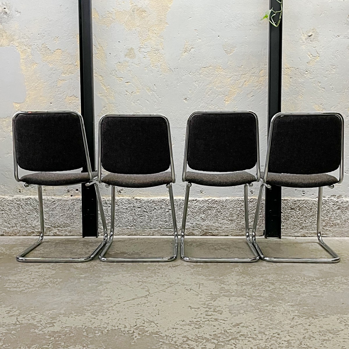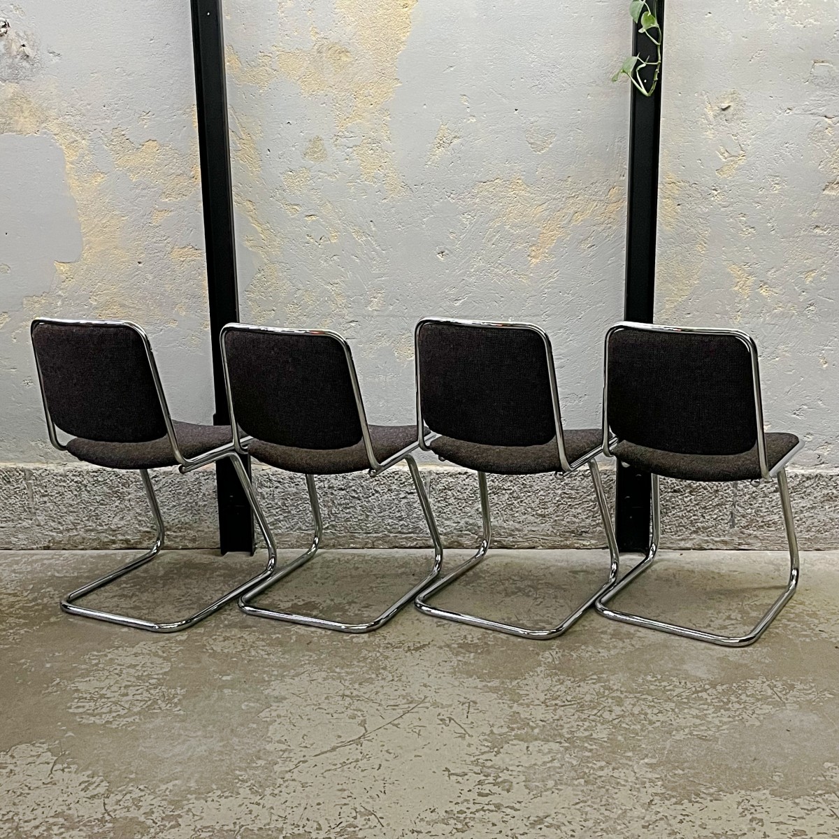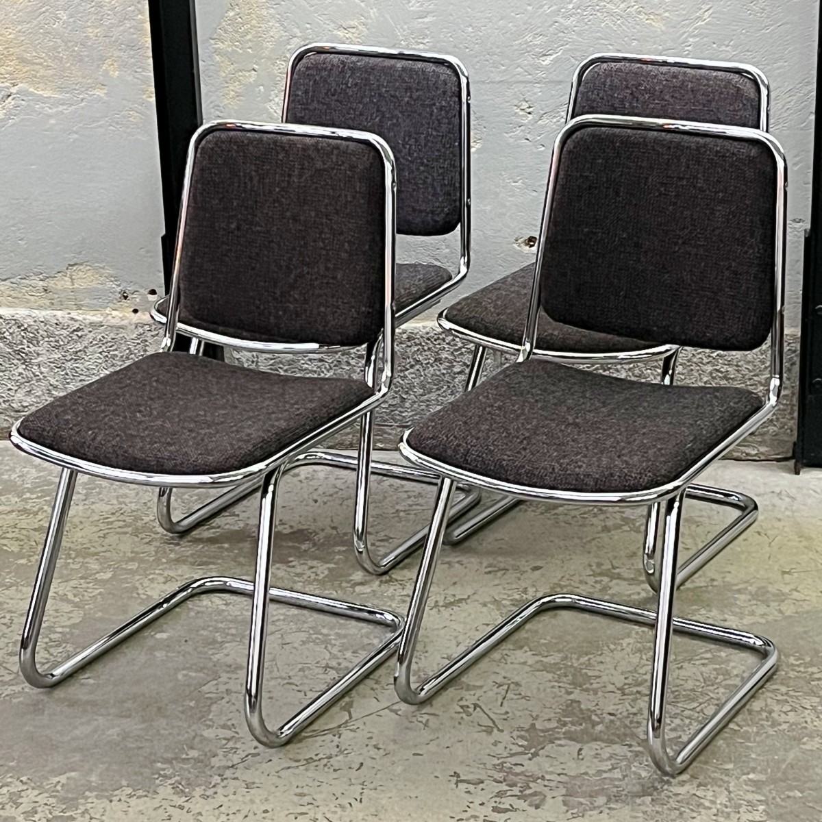 Komplet czterech industrialnych krzeseł w stylu bauhaus.
