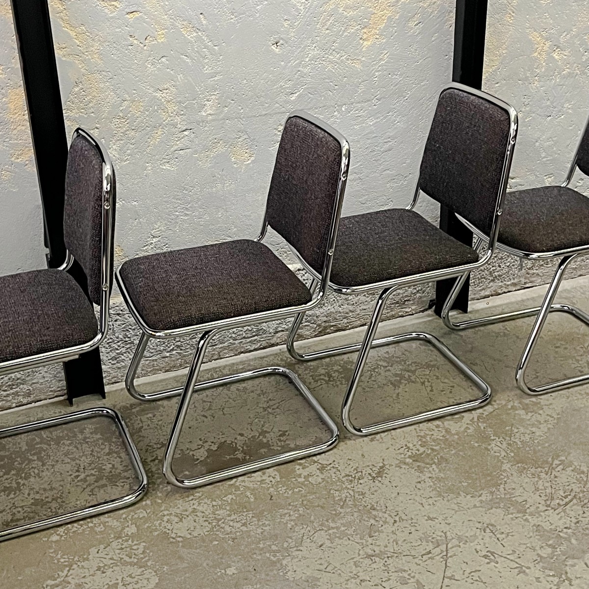 Modernistyczne krzesła z giętych chromowanych rurek