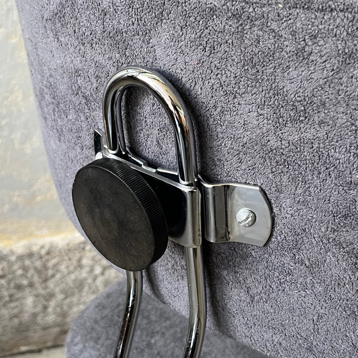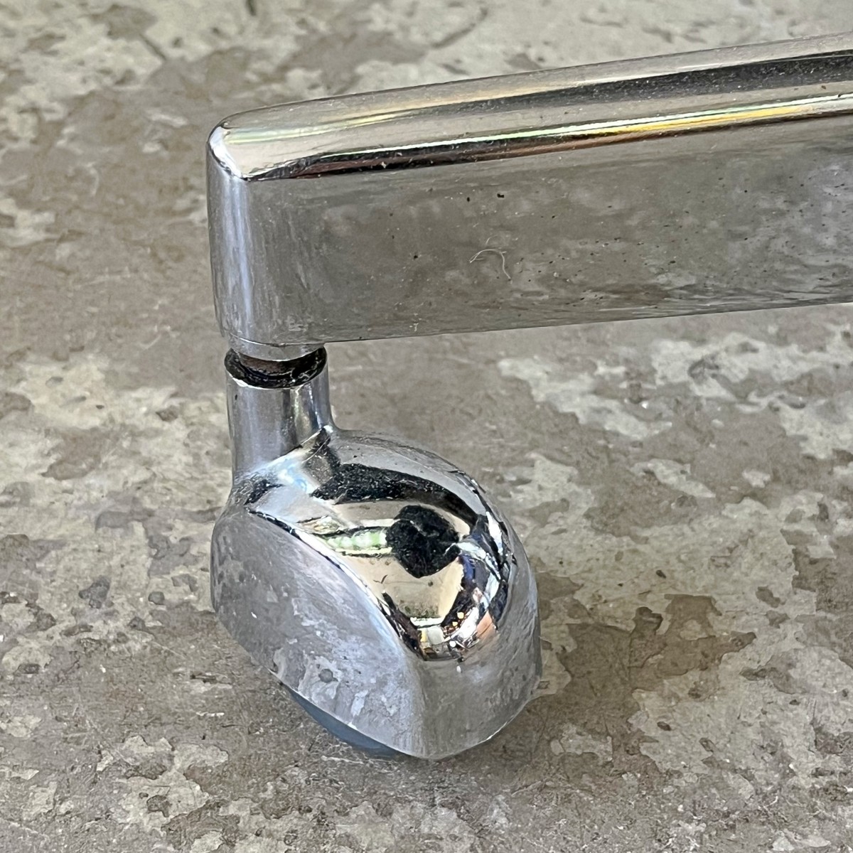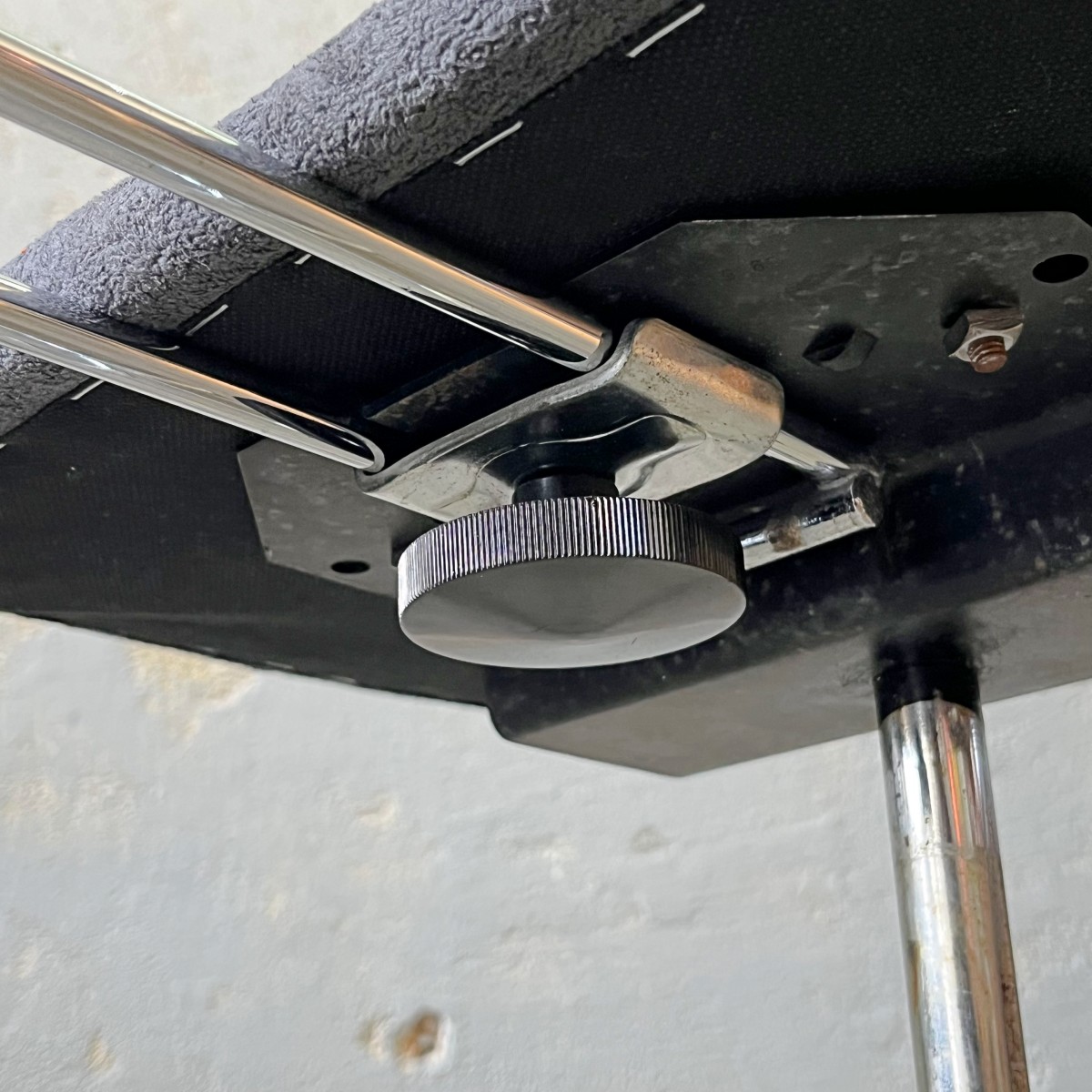 Elementy chromowane mimo wieku krzesła zachowały się w bardzo dobrym stanie. Posiada niewielkie ślady zużycia chromu. Mechanizm podnoszenia siedziska i mechanizm obrotowy działają bez zastrzeżeń. Krzesło posiada również regulację oparcia. Można regulować jego wysokość oraz odległość oparcia od siedziska.