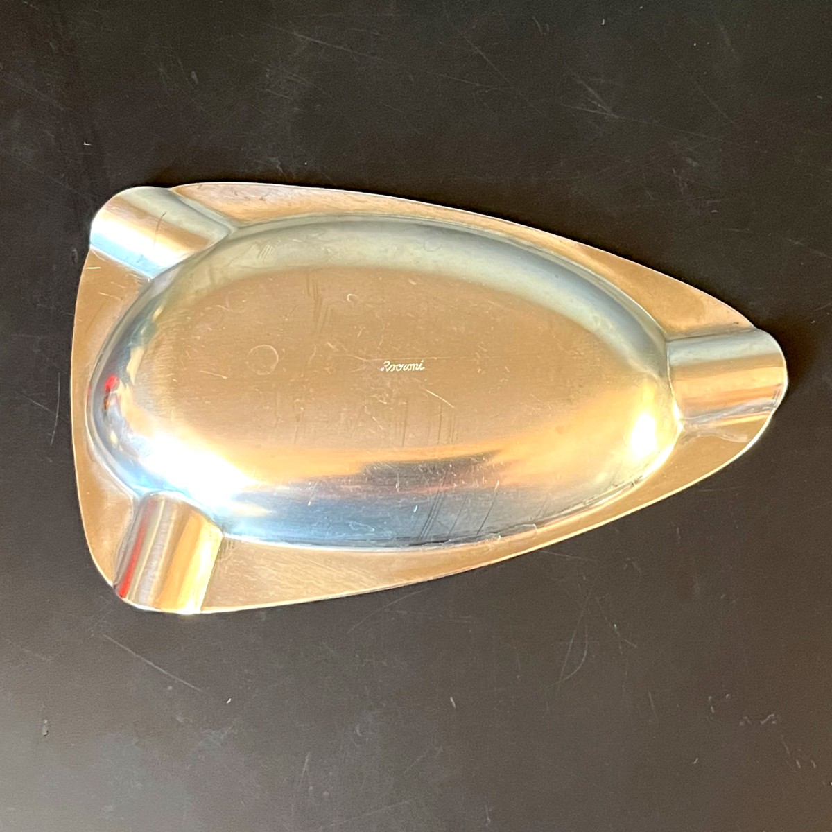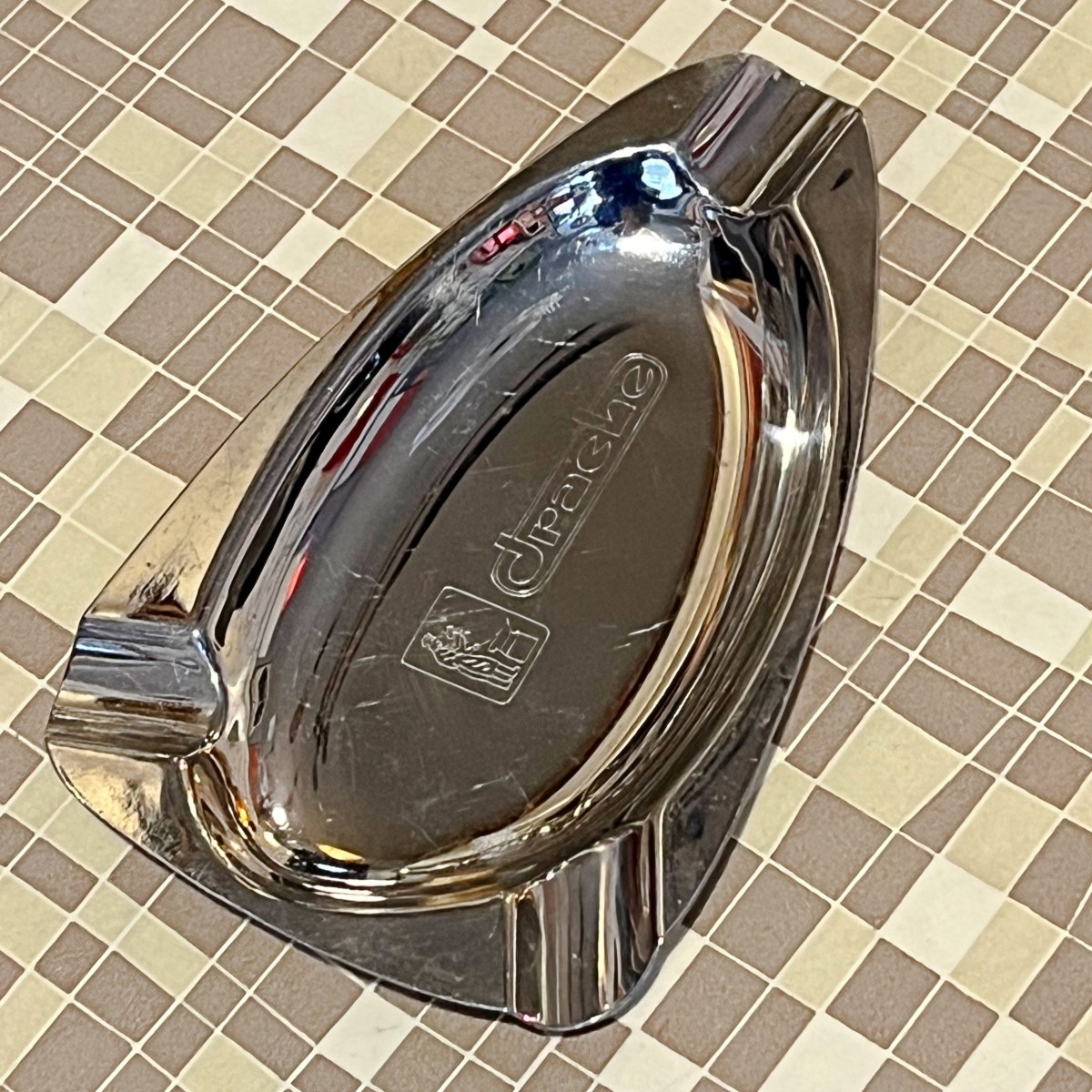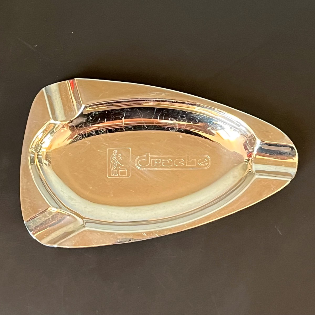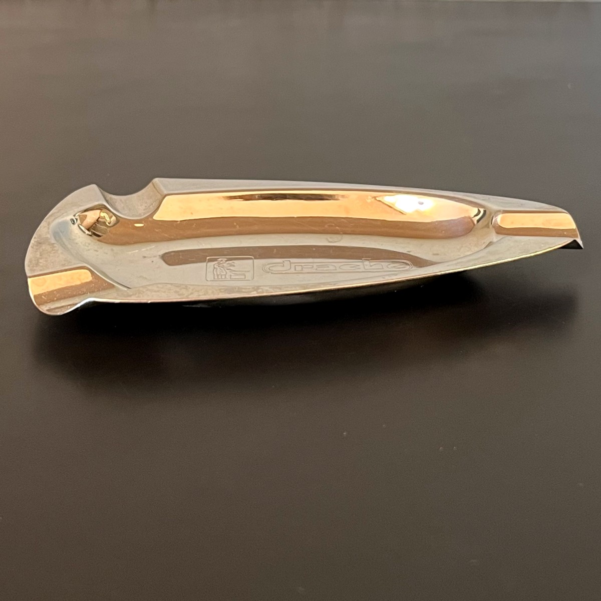 Niewielka popielniczka Drache Rocroni wykonana ze stali nierdzewnej. Przedmiot ma trójkątny kształt i miejsca na trzy papierosy. Na dnie popielniczki wytłoczone logo.