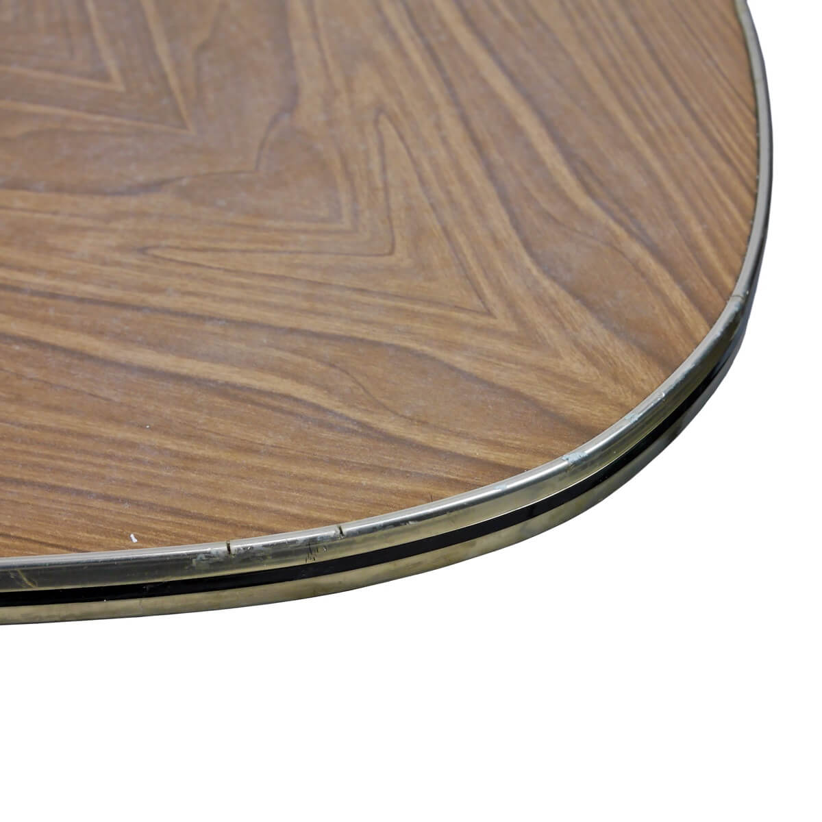 Krawędź blatu wykończona listwą z tworzywa w kolorze złotym z czarnym paskiem.