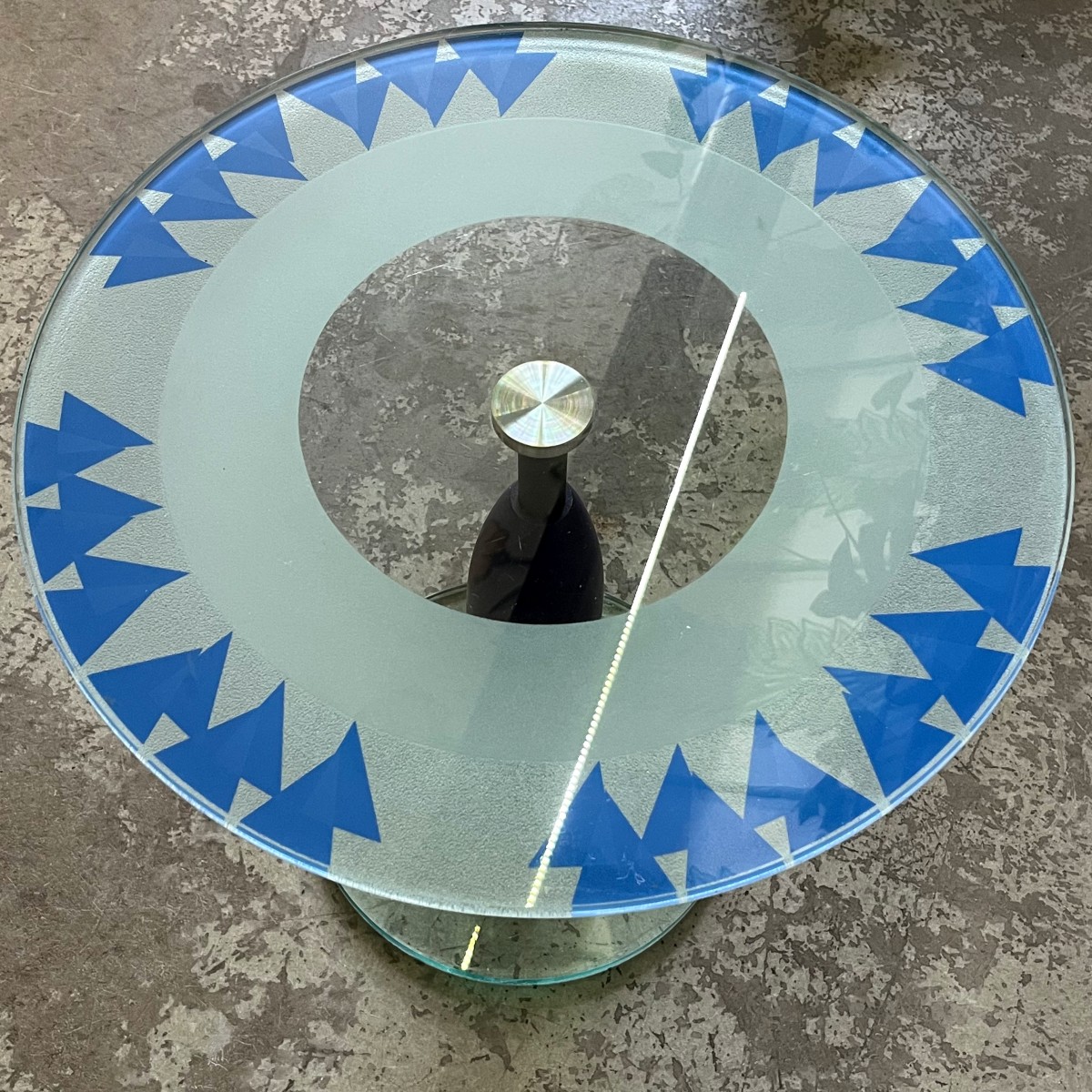 Stolik ze szklanym blatem w stylu postmodernistycznym