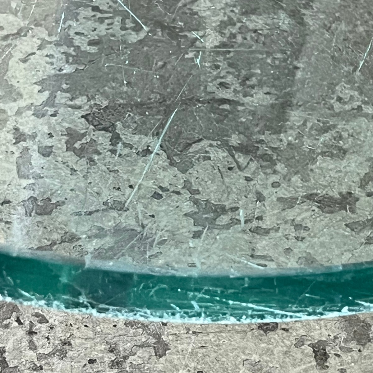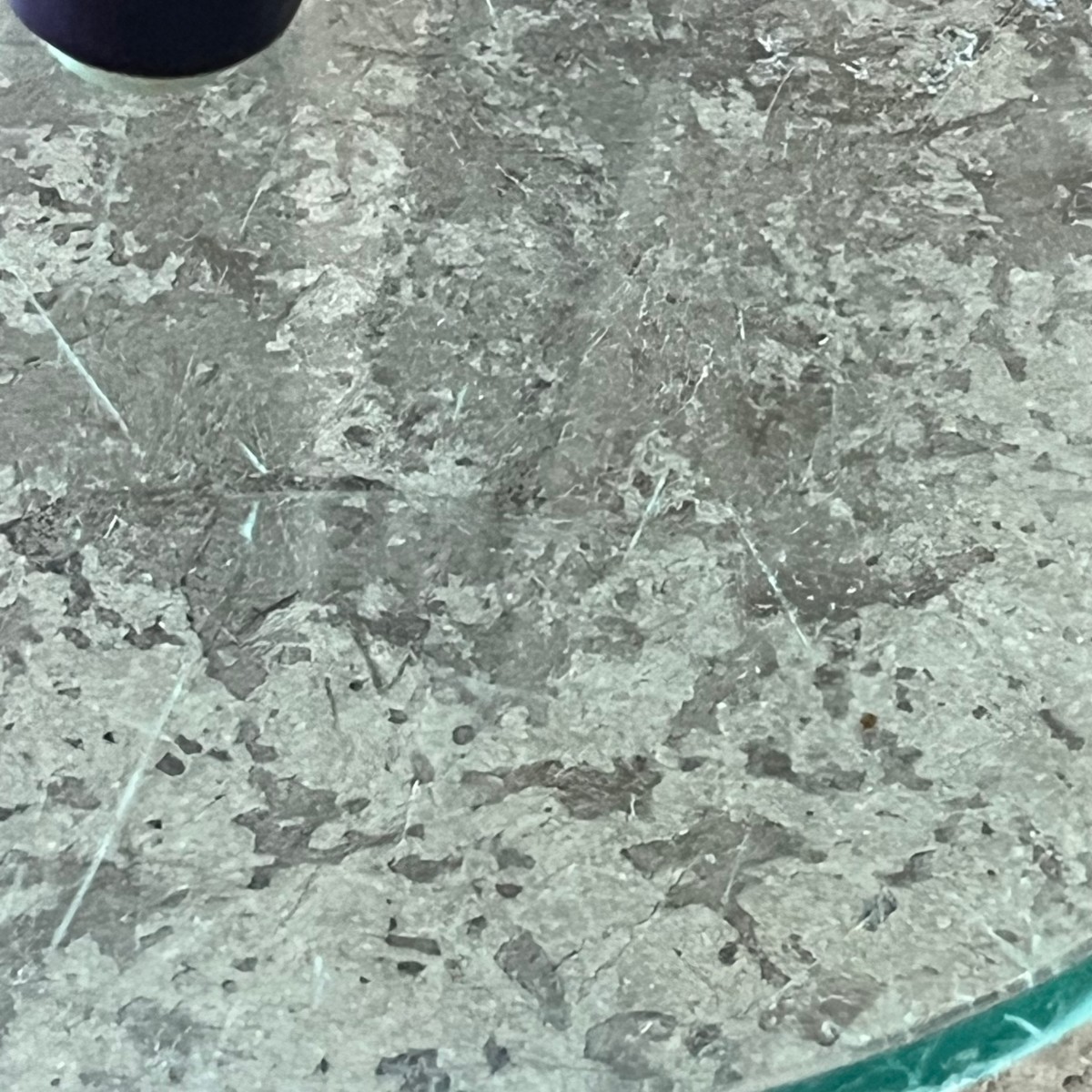Stolik nie jest nowy. Jest to przedmiot używany. Posiada rysy na blacie i na szklanej podstawie. Drewniana kolumna podstawy posiada niewielkie pęknięcie na dole. Mimo tych drobnych niedoskonałości stolik oczarowuje swą urodą i pozytywną energią.