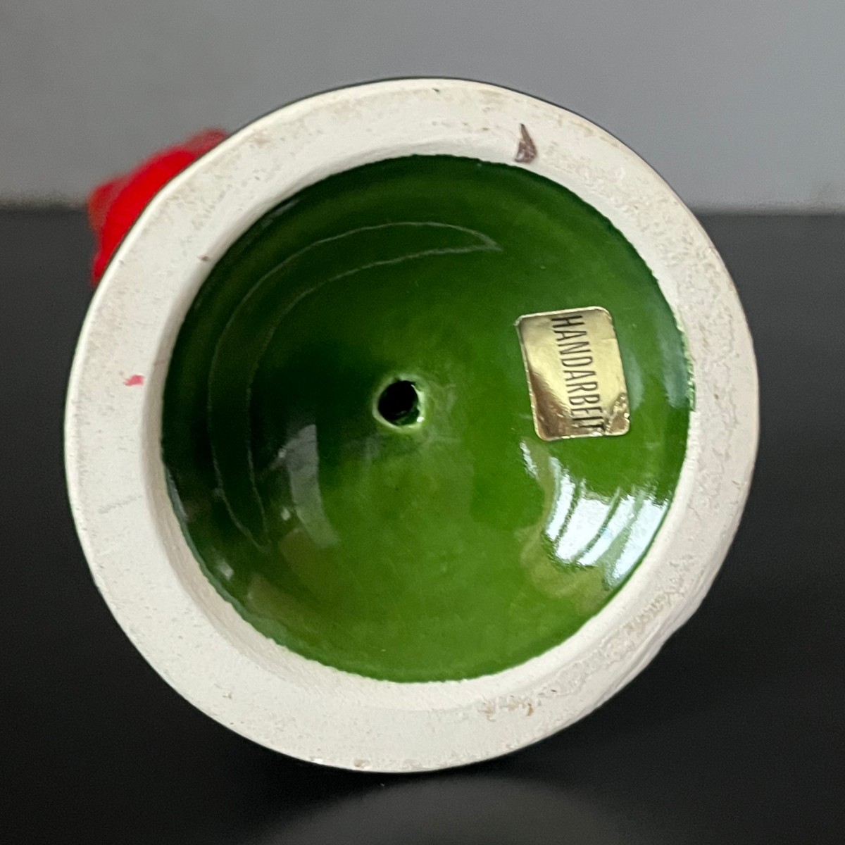 Przedmiot używany zachowany w bardzo dobrym stanie. Od spodu naklejka "ręcznie wykonane".