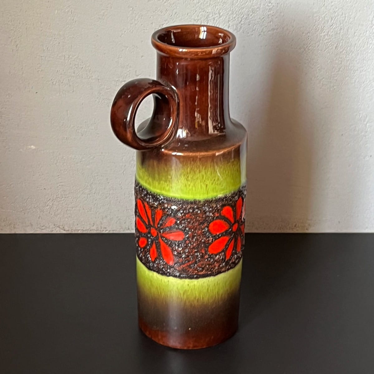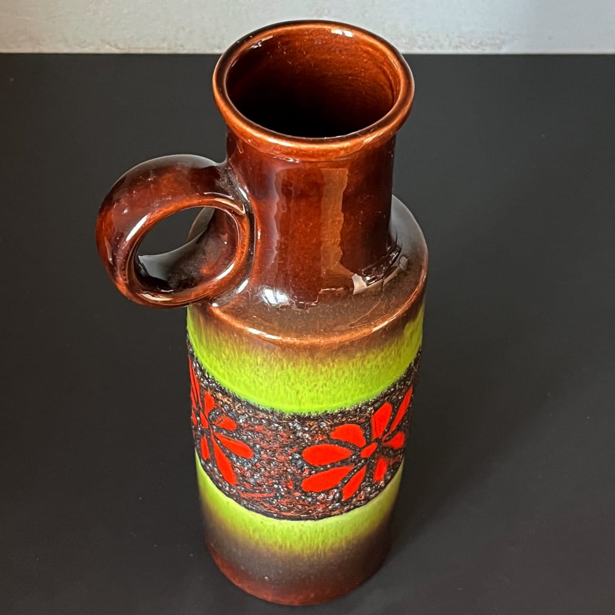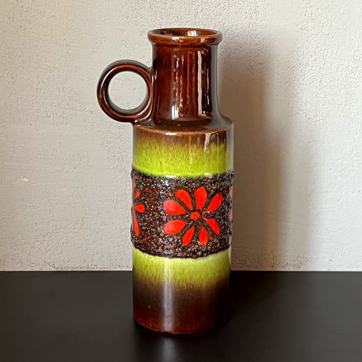Wazon ceramiczny z okrągłym wykonany w niemieckiej wytwórni Scheurich w latach 60/70. Wazon posiada sygnaturę 401-28 W. Germany.